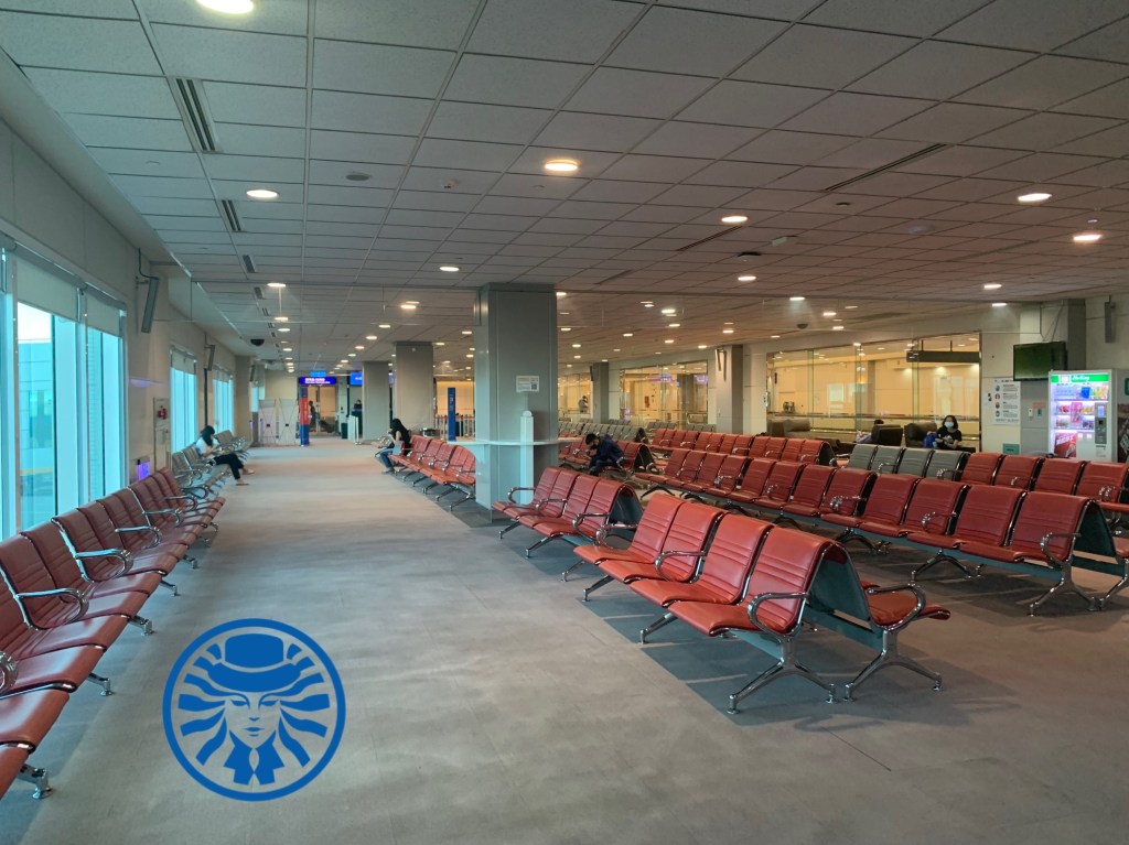進入出境門,並沒有什麼特殊,只是一路很空曠,想起了藍人當年還在航警局服役的每一個清晨跟深夜,只有進入候機大廳的時候還有一位地勤再次確認體溫,進入之後,平常藍人都找不到座位,現在是自己選要坐哪,看看某些旅客奇特的防疫造型打發等待時間。