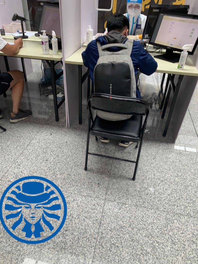 到 check-in 櫃臺之後真的很空,跟平常大早的黃金時段爆發人潮有巨大了落差,等了一會兒才有人來,櫃台地勤人員告知說還有20分鐘才開台,請我們先填寫一個是掃QRCode的中國海關健康單(這個填完有一個QR Code要截圖收好),一個是實體紙台灣方面的一個自我健康聲明的簽名。