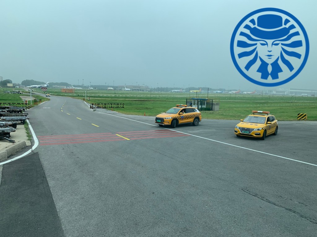 上了防疫專車之後等了蠻久的時間車才出發,在機場內部有機坪公務車開路