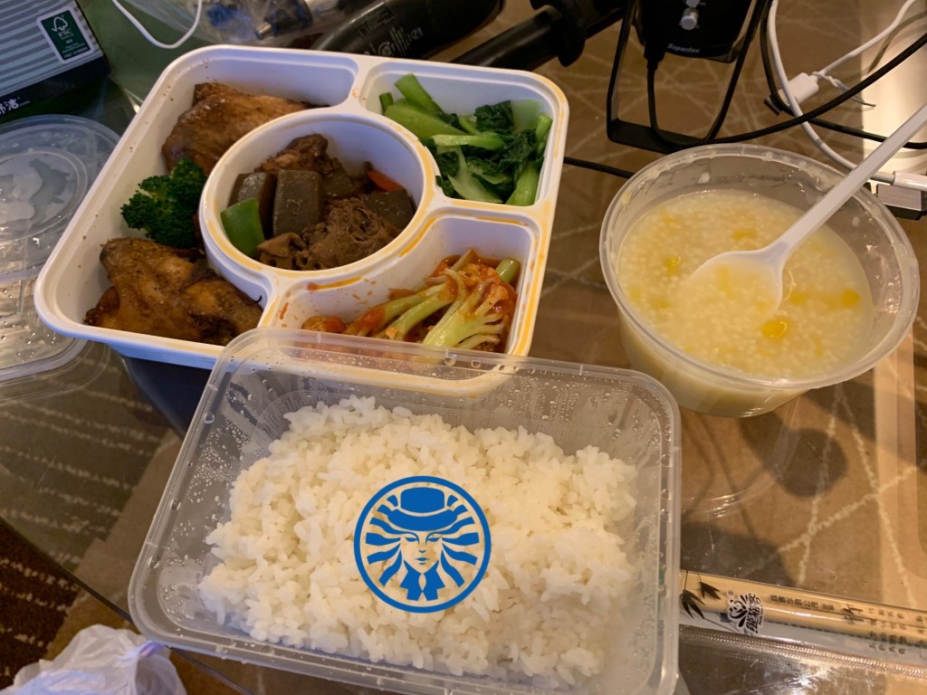最後附上我這個價值 50元人民幣的第一天的晚餐,結束我的第一天隔離,沒有特別好吃或難吃,份量還蠻多,尤其白飯好多。