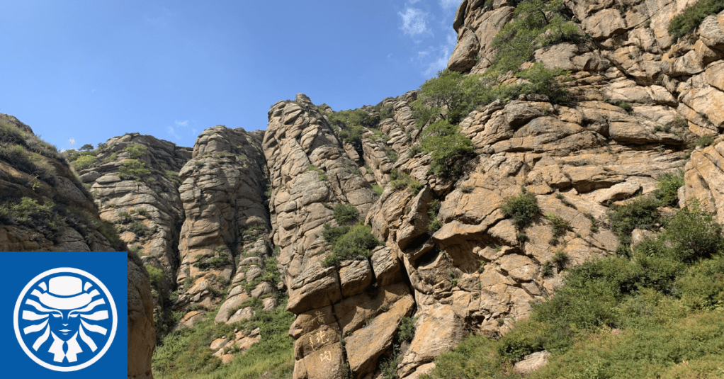緊接著我們沿著步道往下走,步道兩側是高聳且情形怪狀的石壁與山崖,我才頓時恍然大悟,原來中國大陸常用的「溝」其實就是山谷的意思。