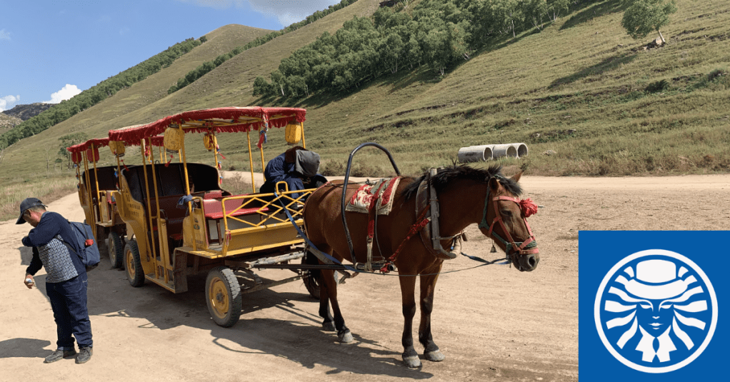 進入草原之後經過了許多不通的風景也用了許多不同的交通工具,我們先是坐上電力與馬力的混合動力馬車穿越一個巨大的草原。