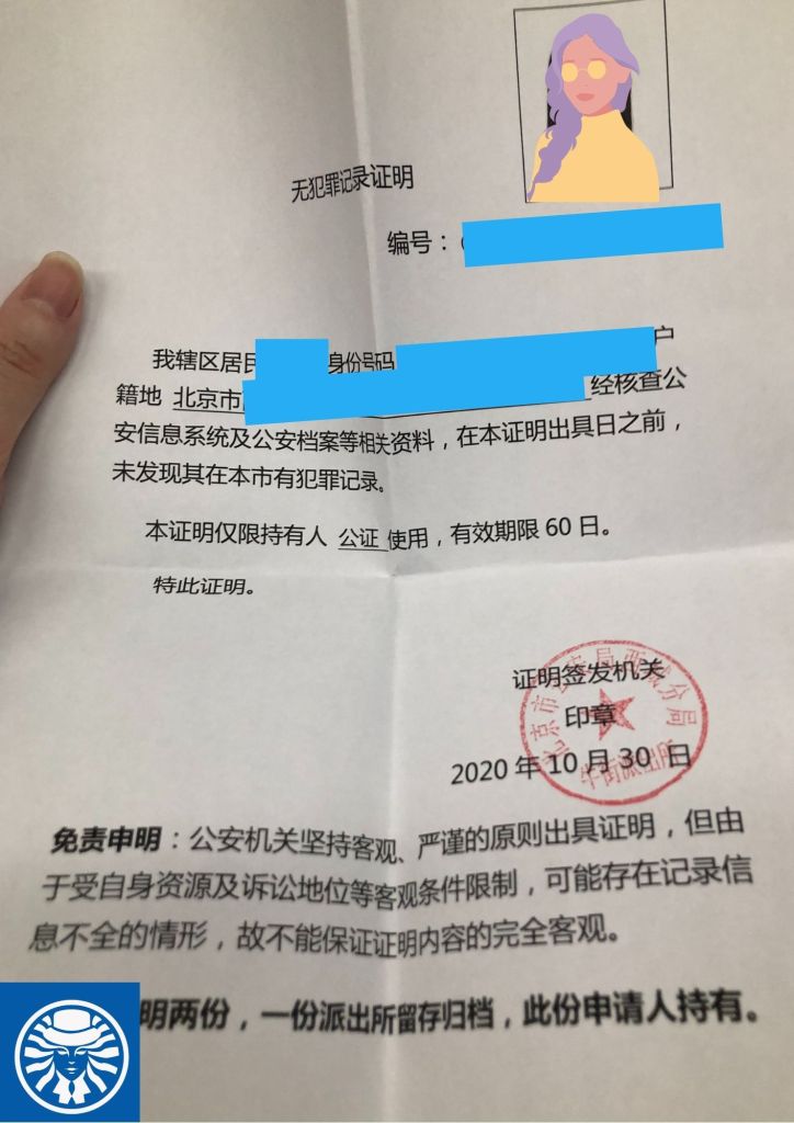 我看了你流程指有無犯罪證明跟我不太一樣,我現在有點緊張,到底一般派出所辦的能不能通過。
