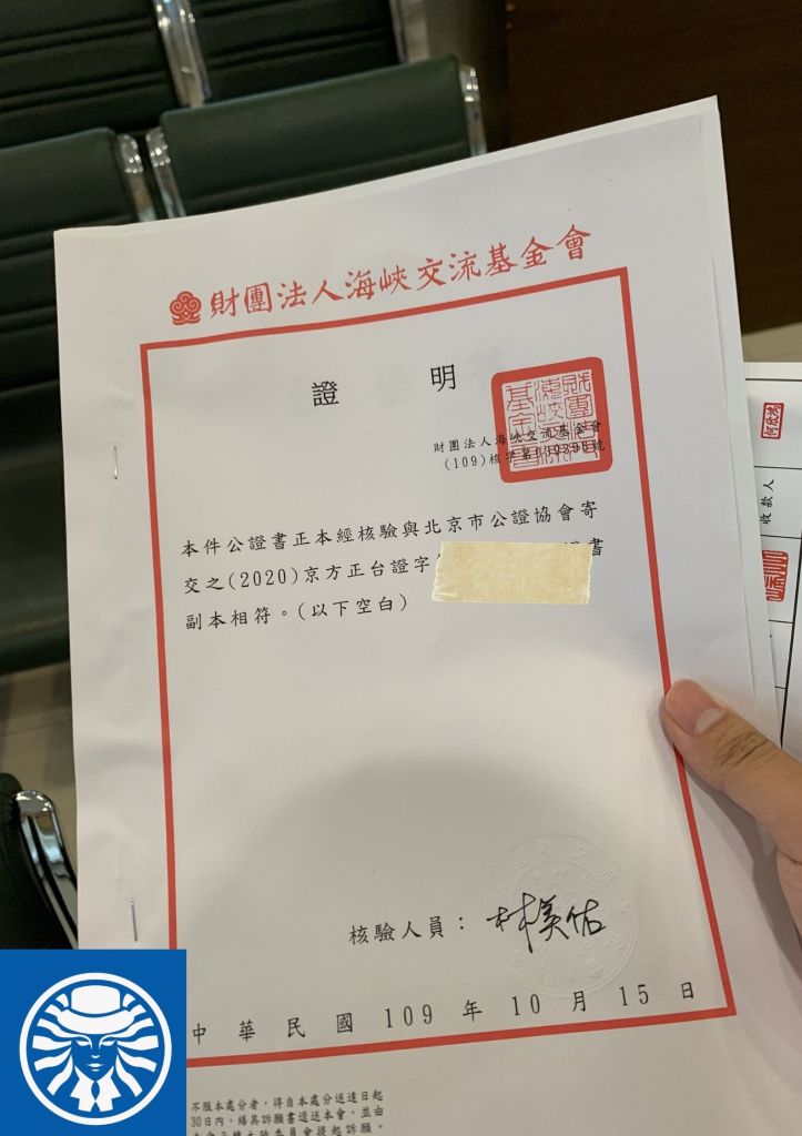 去台灣海基會驗證並領取大陸結婚證的公證書正本