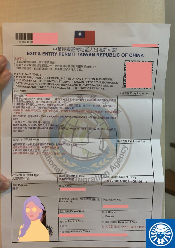 陸配前往入出境管理局領加注,加注時間跟團聚通行證時間一樣六個月。