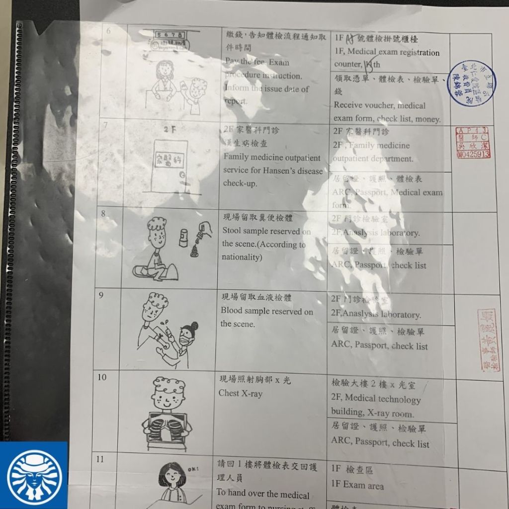 後來我根據我這個陸配群的團員內容告知仁愛醫院只要 1470元台幣,其他好像是2500元台幣的體檢費用,於是我們臨時決定前往仁愛醫院(無需預約),到達後詢問現場志工告知進去之後一樓左邊有一個健檢中心,告知「陸配依親居留體檢」,後讓我們填寫表格之後批價、付費之後就得到了你的「任務卡」開始去二樓跟著這張任務卡依序完成各項目體檢。