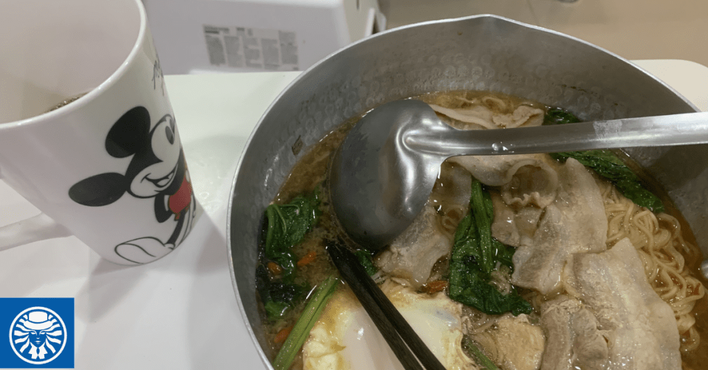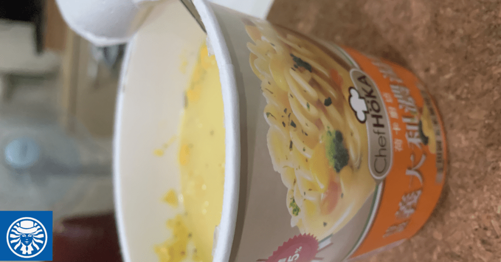 迫於無奈,因為餓到要崩潰了,我只好吃一個之前里幹事關懷包裡面的小杯麵