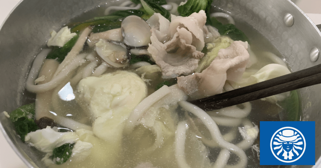 有了愛的補給包,我再也不需要垃圾熊貓了,我可以煮烏龍麵,裡面可以放箘姑蔬菜組合,還可以放肉片之外,還有蛤利!!整格湯真是料滿滿的爽