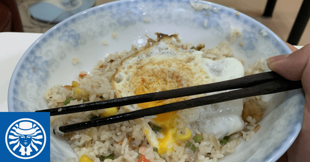 今天把冷凍的鮭魚炒飯炒了,加了個蛋。