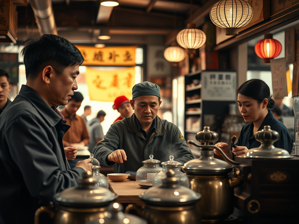 第三站,我來到晴光商圈的老賴茶棧。一進門,就感受到店內的熱氣撲面而來。老闆告訴我,這裡的工作環境需要忍受高達45度攝氏的溫度,因為他們沒有自動煮茶機,需要手動同時操作三台設備。